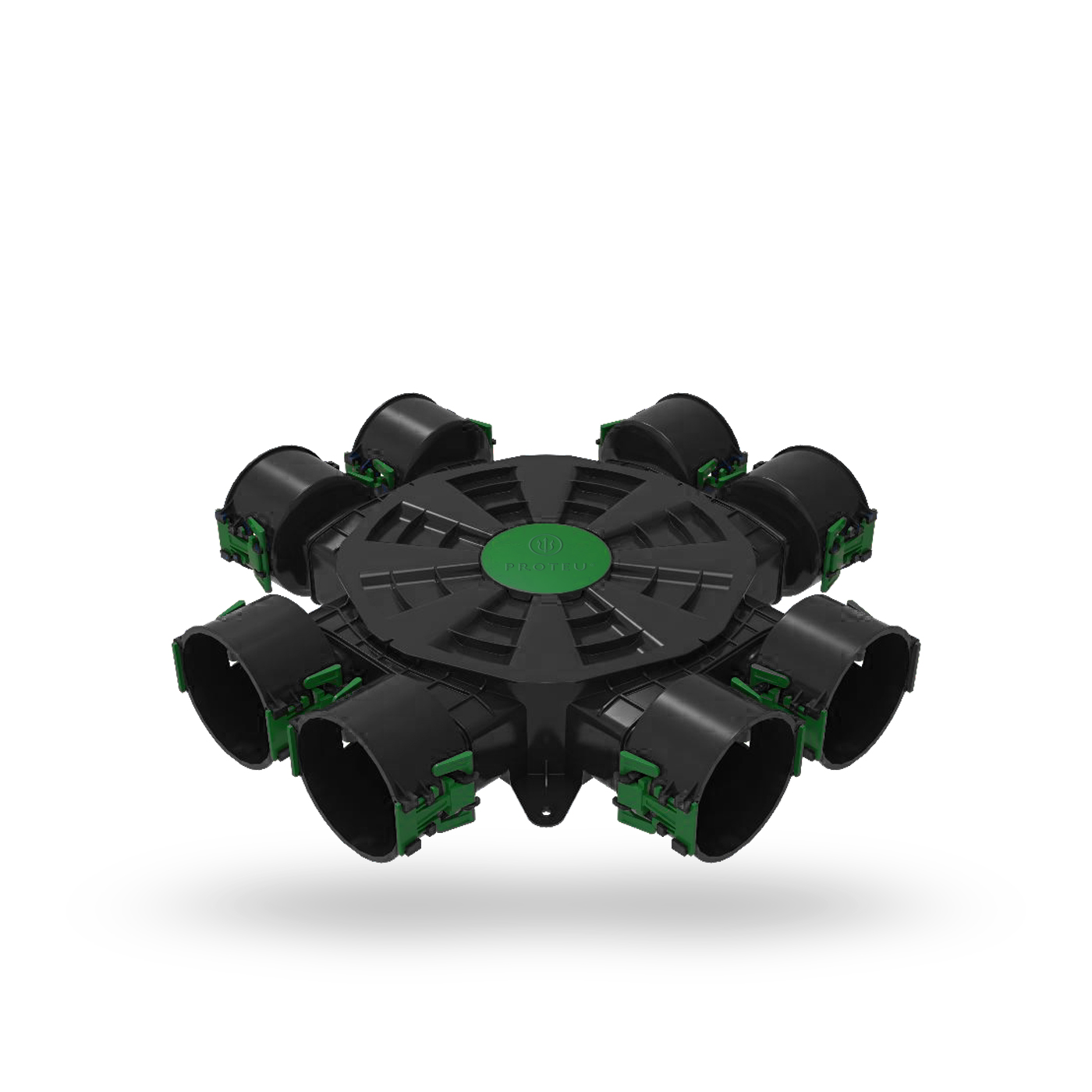 Permite a ligação de até 8 tubos utilizando conectores centrais ou até 6 utilizando conectores laterais. Os tampões e juntas devem ser adquiridos separadamente.