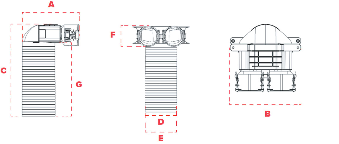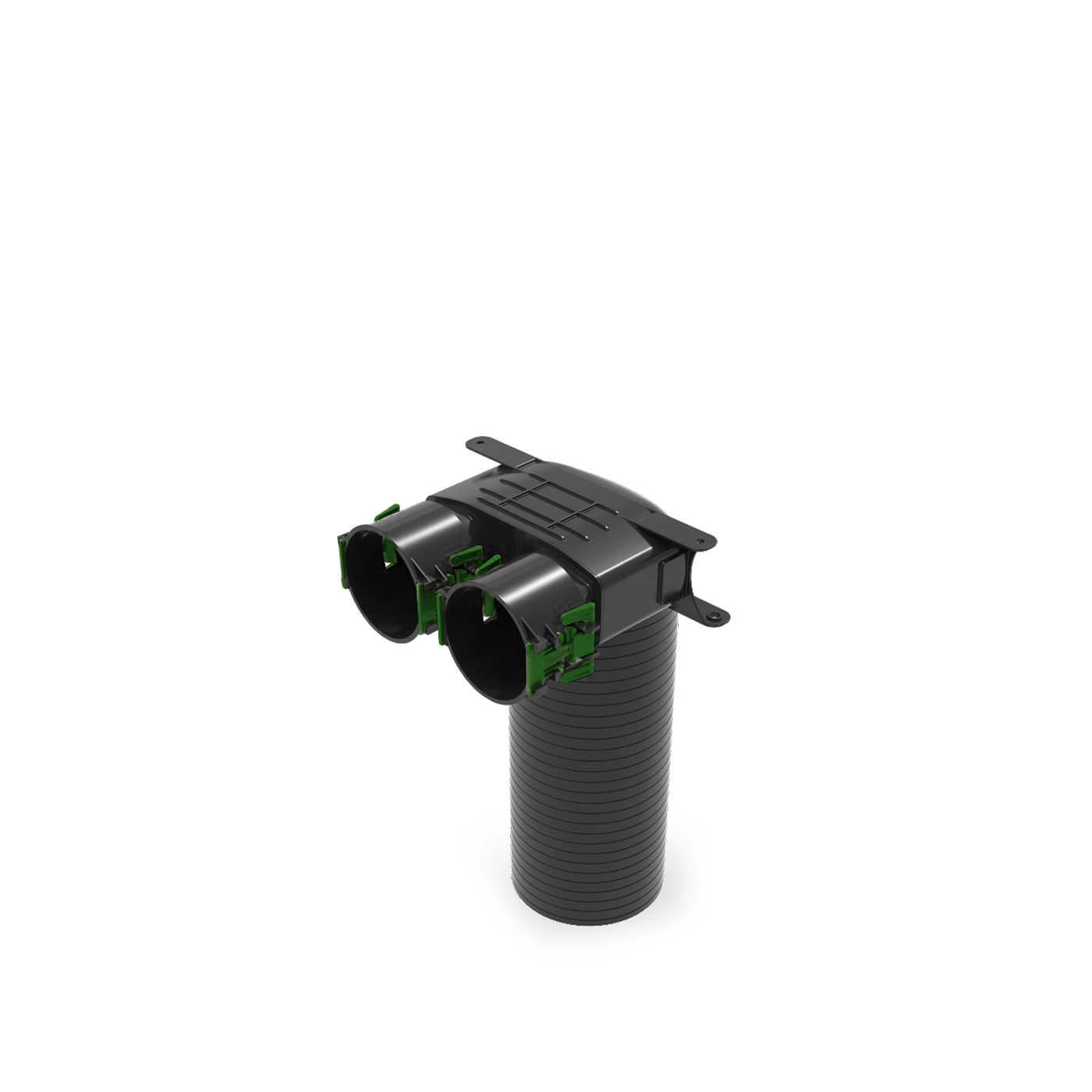 O Tê de conexão circular da Proteu® permite a ligação de até 2 condutas a um difusor de ar de alimentação/ exaustão de 125 mm.