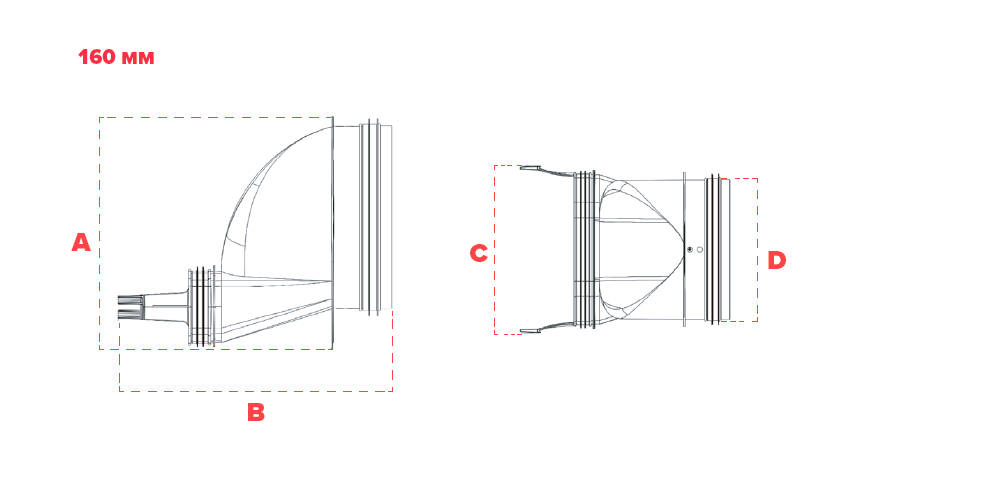 O conector permite ligar condutas redondas de 125 e 1600 mm da VMC à caixa de distribuição.