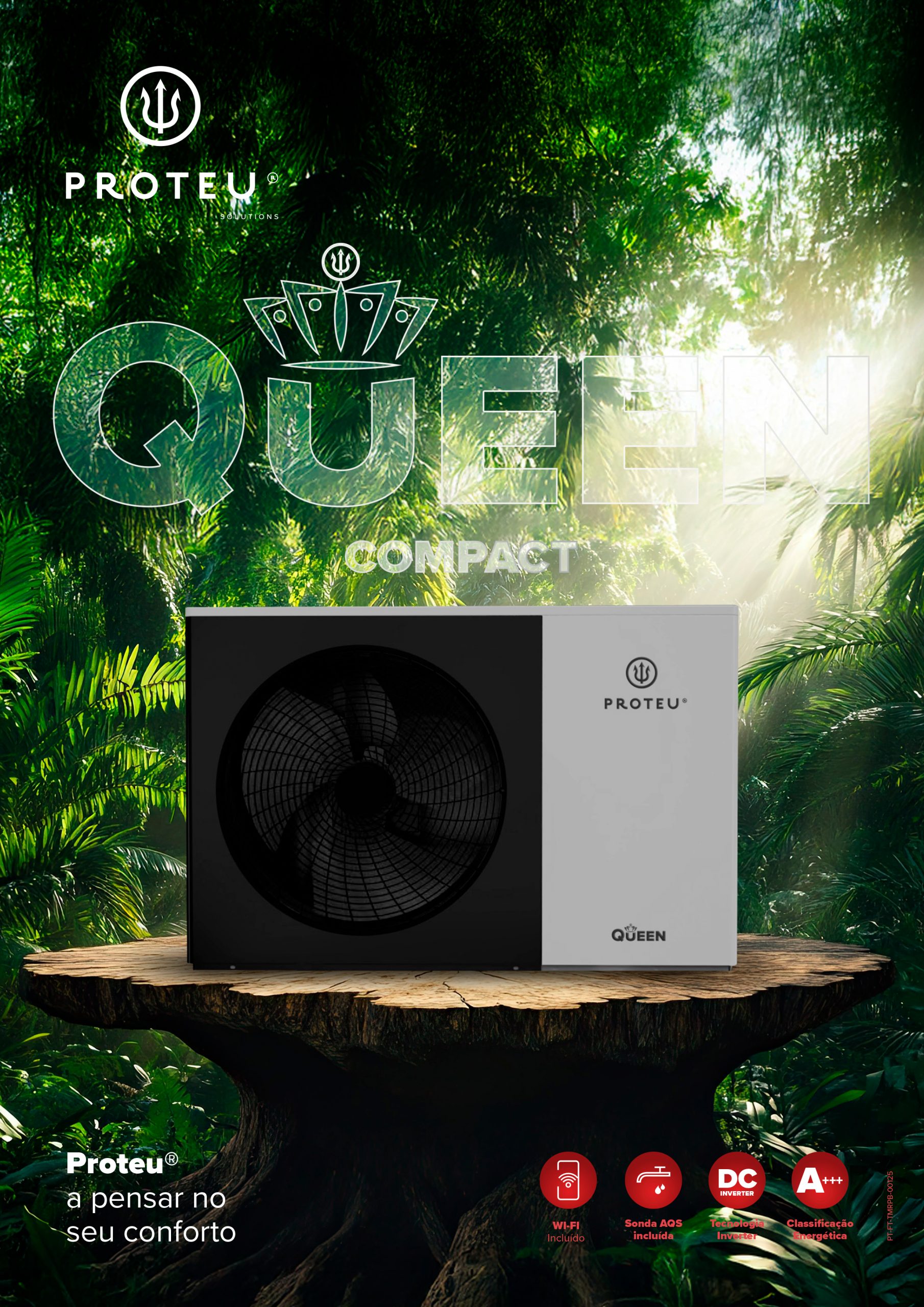A nova bomba de calor R32 Queen Compact combina alta eficiência (A+++), baixo ruído e design moderno e elegante.